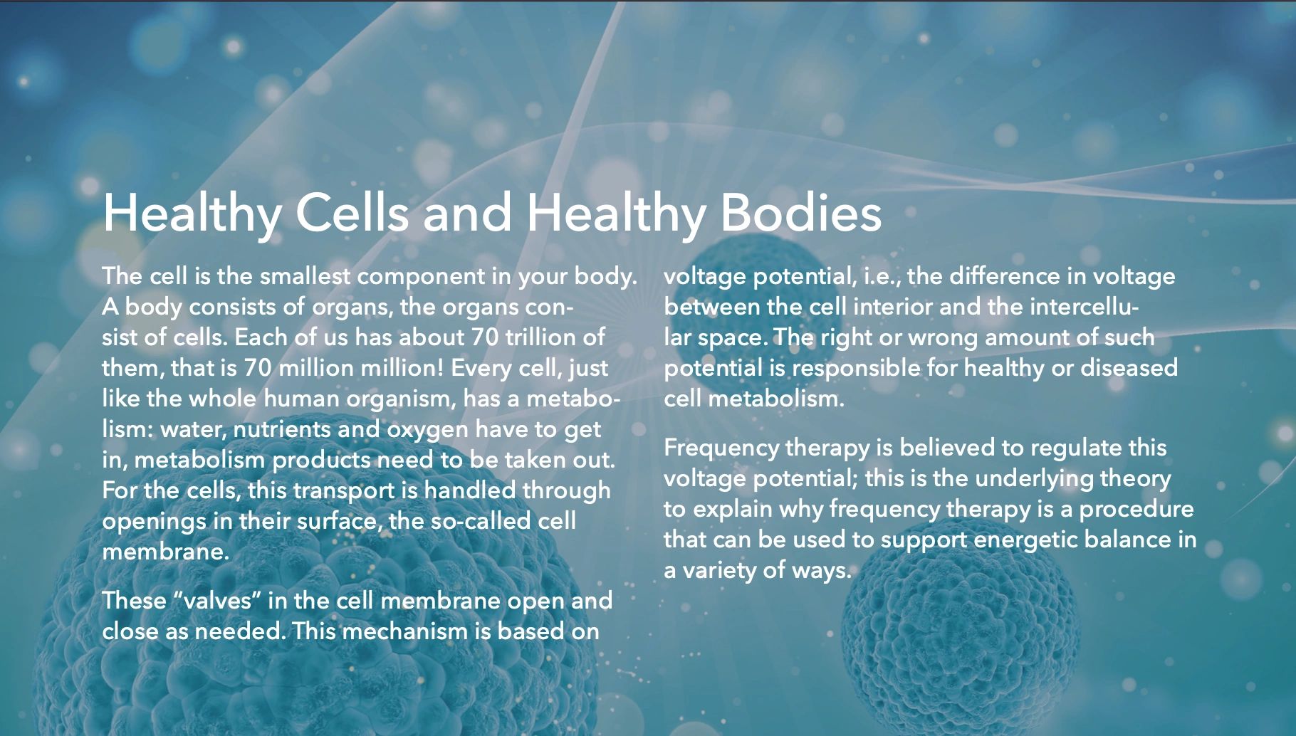 Everything in the universe is energy and everything has a frequency. Each cell in the body has a special charge and this charge is very important to health.